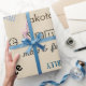 Inpackning av papper med unisex- namn vid presentpapper