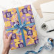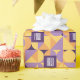 Med geometriska mönster i lugnande nyanser av lila, orange och gult ger denna design en sofistikerad och nostalgisk touch till din speciella dag.