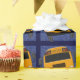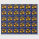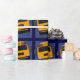 Gul skolbussgåva för roligt som slår in papper med en svart mönsterbakgrund.