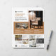Ren och modern mall för flyer för inredningsdesign, perfekt för att marknadsföra tjänster för hemdekor, inredningsstudior, fastighetsinredning eller renoveringskampanjer. Lätt att anpassa och ideal för professionell marknadsföring.