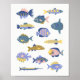 Illustration för barn med fiskar av olika former. Några av dem är söta, lite läskigt, några tittar bara dumma.