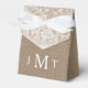 Fira i stil med den här eleganten och mycket trendig bröllopsboxar. Konstruktionen har en strålande bakgrund med vintage vit snöre som är perfekt för land eller lada som temas giftermål firande. Utformningen är enkel att anpassa med ditt eget monogram initialer, och din familj och dina vänner blir glada när de får denna fantastiska förmånsbox. Matchande objekt finns i samlingen.