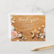Personalisera detta tackkort för insamlingskampanj med dina meddelanden i vit text mot en sval strandscen med sand och havsskal. Baksidan har avsändaradress och meddelande i svart text.