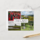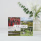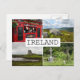 Vykort med fyra bilder av den röda pub och landskap i berömden Temple Pub i Wicklow-bergen och Dungaire-slottet med texten "Irland".