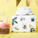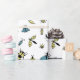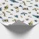 Insektra, av naturens flygande varelser och krypande varelser i blått och gult på fast vit bakgrund.