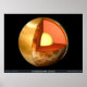 I bild visas en urskild bild av Venus eventuella inre struktur. Bilden skapades från Mariner 10 bilder som användes för det yttre atmosfäriska lagrar. Yta togs från Magellan-radarn bilder. Insida egenskaper hos Venus kan härledas från gravitationsmätningar av fält och magnetiska fält av Magellan och tidigare rymdfarkoster. Kraven visas som adark red, manteln som en ljusare orange-röd och kärnans gult. Det som är känt om Venusien insida kommer främst från rymdfarkosten Venera, Pioneer Venus och Magellan. Före dessa utforskare trodde forskarna att Venus skulle ha tektoniska processer liknande dem som används för jordens mantelkonvektion. Venus och Jorden är båda lika storleka och kan antas ha samma sammansättning. Venus visade dock inga tecken på tallatsektonism och tycks ha en enda platta som gör den mycket annorlunda än jorden.