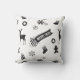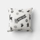 Ett dekorativ kudde med en svartvitt sömlös upprepning av julgranen inslag - strumpor, gingerbredden, snöflingor, renar, prydnadsföremål, ljus, Julgran och ord "God jul" - som exempel. Det kan vara lämpligt för högtidlig jul-tillfälle.