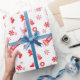 En röd, sömlös upprepning av julgranen inslag - lager, gingerbredden, snöflingor, renar, prydnadsföremål, ljus, Julgran och ord "God jul" - som exempel.