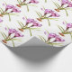 Crocus vattenfärgsfärgad mönster är papper omslutningsgåva. Konsthackaros som målar in presenter pappra i vitt, lila och grönt. Underbar för Påsk-gåvor eller vår födelsedagar. Sarah Trett målade på ett unikt sätt i vattenfärg.