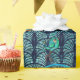 Vackra Art Deco Era Seamless mönster med konsten deco fläkt mönster i blått och kvinna från 20 års tid i blå snöre-klänning i blå hatt med fjädrar. Tryck in andra med detta söta mönster på Nyårsaftonen party-gåvor eller någon annan dag om du bestämmer dig för att kasta Art Deco eller vintage party.