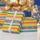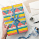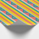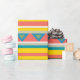 Idén är en funky mönster i gult, rosa, blått och vitt färglöst rand och blått, gult trianglar.