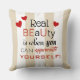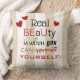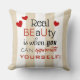 Enkel och roligt inspirationskälla på vår 20-tums x20-tums kudde. Meddelandet lyder "Real BEUty är när du kan uppskatta dig själv." Finns i olika storlekar och tyger!