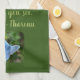 Kökshandduk med Thoreau-citat: Det är inte vad man ser på det viktiga - det är vad man ser. Dekorerad med bilder av en vattenpelare och en vacker blå fjäril.