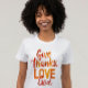 Denna moderna Faith Thanksgiving t-shirt inspireras av ett djärvt penselskript i varma höstskuggor av bränd orange, gult, terracotta och rött, som visar det upplyftande budskapet "Ge tack, Kärlek Gud". Den stora kalligrafin som fångar öga gör ett mäktigt säsong påstående, medan anpassadet för "Gud" i ord gör det möjligt för er att skapa en skjorta som är unik. Perfekt för Thanksgivingens middagar, Friendsgiving-sammankomster, firande och tänkvärda helgdag. Den här inspirerande kristna Thanksgivingens skjorta blandar tro, tacksamhet och stil - perfekt för gruppfoton och omhuldade minnen.