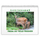 En väggkalender med 12 ursprungliga bilder av vilda djur och växter i fullt som visar livslektioner som djur har lärt mig. Varje naturfoto är parat med ett inspirerande eller roligt ordspråk för att visa den läxa som djuret delade med mig. Bilder från djur är bl.a. björn, tvättbjörn, uggla, hummingfåglar, ekorre och gäss från baby. En roligt och inspirationskalender för vilken typ av älskare som helst! Du kan anpassa kalendern genom att byta runt bilderna eller helt ändra året.