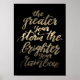 Idén poster med elegantens kalligrafiska återgivning av det upplyftande citatet: "Ju underbarare stormen är desto ljusare regnbåge." Detta vackert utarbetade biet fungerar inte bara som en snyggt dekorator för inslag utan erbjuder också en kraftfull påminnelse om att utmaningar kan leda till ljusare och mer vibrerande resultat. Öka ditt utrymme med den här motiverade poster där ord konst möter motståndskraftens konst. Perfekt för att lägga till ett bra-videoklipp i valfritt utrymme. Upptäck vår samling motiverade poster med inspirerande citat för honom och henne och mer. Öka din dekoration med den här poster som avslöjar positivitet och motivation.