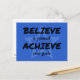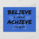 Ett slående vykort med texten "BELIEVE in you ACHIEVE your goals" i svart text på en ljusblå bakgrund. Dessa är ord att leva av, oavsett om det är i ditt eget liv, i affärsvärlden eller att utöva en favoritsport eller hobby.
