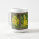 En underbar början med ett kaffe mugg som innehåller ett inspirerande budskap och foton av gult rudbeckia och rödhett pokerblommor omgivna av ett gräns tillverkat av det unika mönster som finns i träd bark.