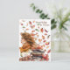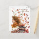 Vykort med ett inspirerande kunskapsbudskap är Power i kortets övre höger med en vattenfärgad illustration av en flicka med vind svpt hår och en stapel av bokar bland blåsande snurrande löv i rött fall-färg-toner. Bilden med blåsande löv upprepas på kortets baksida i det nedre lämnat hörnet. Ett vykort med ett uppmuntrande budskap till studenter och vuxnor.