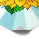 Solrossen av söt hand plockade gult med magisk bakgrund. Fyrfärgkonst med inspirationcitat. Retro färg.