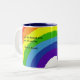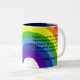Den roliga regnbågedesignen som den inspirera muggen har lyckan, är ett resacitationstecken: Lyckan är en resa, inte en destination. Dansa som, fast inget håller ögonen på dig. Kärlek som, fast du aldrig har ontts för. Sjunga som, fast inget kan höra dig. Bo som, fast himmel är på jord.
