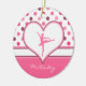 Dyrbar danshelgdagprydnad med körsbärsröd polka dots och ballerinadansare i en vithjärta.