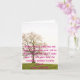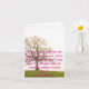 Kortet är ett vackert foto av träd i tidigt morgonljuset av en tråkig dag. Det finns ett bibelcitat för att uppmuntra till din trosutövning. Detta kort kommer att tas väl emot och inspirera alla som får detta kort.