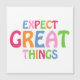 "Förvänta dig fantastiska saker" färgglada moderna inspirerande anteckningskort är moderna, glada och ljusa. Flerfärgade bokstäver inkluderar blått, två nyanser av rosa och grönt. Baksidan är blå för att matcha, men kan enkelt anpassas i Zazzles designverktyg.