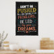Ett motiveringscitat som säger: BLIR INTE PUSHERAD AV PROBLEMEN.VARA LEDDA AV DINA DREAMS. Citatet förmedlar ett budskap om självbestämmande och oberoende.