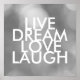 Detta inspirerande citat poster levande dröm att kärlek skrattar åt text i vitt på grått-fotokonsmönsterbakgrund för murkonsdekanter hemma eller på kontoret. Originalfotografering upphovsrätt Ann Powell alla höger reserverade.