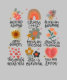 Beskrivning: En samling handritade inspirationstecken och illustrationer med blommor, regnbåge, hjärta och upplyftande meddelanden som "Be Kind Alltid", "Du Matter," "Fokus på Bran" och "Du är älskad". Den mjuka pastellpaletten färg och den lekfulla typografin skapar ett varmt och positivt estetiskt.
