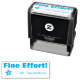 Denna motiverande gummistämpeldesign har meddelandet "Fin insats!" och ett anpassat lärar- eller utbildarnamn. Den har också en dekorativ stjärnutkastform. Den kan användas av en lärare, utbildare, instruktör eller handledare vid betygssättning av studentarbete för att indikera att en student har gjort ett exceptionellt jobb.