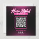 Den här eleganten är en perfekt för att befordra dina hårsalonspecialer. Utformningen har en sofistikerad palett i färg och ren layout med gott om utrymme för att visa dina tjänster och priser. En QR-kod ger klienterna snabb åtkomst till onlinens bokningssystem. Anpassa den här flygaren med din salons logotyp och kontaktinformation för att skapa ett material från professionell marknadsföring som förbättrar ditt varumärke. Hämta uppmärksamhet och kör bokningar till din hårsalon.