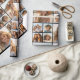 En design med en solid bakgrund. Använda upp till fjorton fyrkantiga foton för att skapa en unik och personlig gåva. Om du behöver justera bilder klickar du på verktyg för att anpassa ändringar.