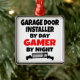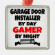 Den här textdesignen innehåller frasen "Garage Door Installer by Day Gamer by Night" och är perfekt för alla bilverkardörrsinstallatörer som kärlek spelar video- eller datorspel.