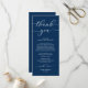 Lägg till en personlig och tankeväckande beröring till firande i bröllop med den moderna, rustiska middagen i romantik bröllop, där du tackar dig för ditt kort. Designat att placeras vid varje gästplats, denna elegant biet på bröllop-stationär hjälper er att uttrycka tacksamhet och skapa en varm och välkomnande atmosfär. Med sitt moderna minimalistiska marinblått tema i eleganten är det perfekten att förbättra din middag, mottagning eller middagsdekoration i bröllop. Anpassa med namn, bröllop-datum eller ett speciellt meddelande om du vill göra det till din rätta.