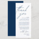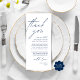 Det här är det moderna redigerbara kortet, med minimal skriptutformning, marint blått tema, Ställe Ställa in tackkort. i kärlek och visa er uppskattning för era gäster när de sätter sig ned vid sitt säte och läser denna personlig och charmerande tack för att ni sätter in kortet för ställe. Det är ett underbart sätt att sparka av er speciella dag firande!