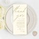 i kärlek och visa er uppskattning för era gäster när de sätter sig ned vid sitt säte och läser den här personligen charmerande tack som ni placerar kortet i gult guld. Det är ett underbart sätt att sparka av er speciella dag firande! Det här kortet anger tonen för en händelse som inte kan glömmas bort. Tack-kortet har ett modernt designskripttema som ger dig en aning elegans utan tidpunkter i firande. Designad av TeeshaDerrick