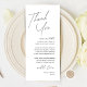 Det här är det moderna redigerbara kortet, med minimalistisk skriptutformning, svart och vitt tema, Ställe Setting - Tack Cards. i kärlek och visa er uppskattning för era gäster när de sätter sig ned vid sitt säte och läser denna personlig och charmerande tack för att ni sätter in kortet för ställe. Det är ett underbart sätt att sparka av er speciella dag firande!