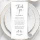Det här är det moderna redigerbara kortet, med minimalistisk skriptutformning, svart och vitt tema, Ställe Setting - Tack Cards. i kärlek och visa er uppskattning för era gäster när de sätter sig ned vid sitt säte och läser denna personlig och charmerande tack för att ni sätter in kortet för ställe. Det är ett underbart sätt att sparka av er speciella dag firande!