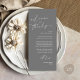 i kärlek och visa er uppskattning för gästerna när de sätter sig ned på sitt säte och läser det romantiska och romantiska tack som du placerar kortet (välkommen och tack) i mörkens grått-tema. Det är ett underbart sätt att sparka av er speciella dag firande! Det här kortet anger tonen för en händelse som inte kan glömmas bort. Tack-kortet har ett modernt designskripttema som ger dig en aning elegans utan tidpunkter i firande. Designad av TeeshaDerrick