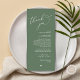Vi presenterar perfekten som avslutar beröring till din bröllopsmottagning - vår elegant-skogsskassa grönt Bröllop Tack Ställe Ställningskort, med korttiteln "Tack!" ! Designat för att uttrycka er uppriktiga uppskattning för varje gästs närvaro på din speciella dag, är dessa kort det perfekta sättet att göra din middag i bord en personlig beröring. Dessa kort för att ställa in ställe är lätta för användan - bara ett ställe på varje middagskort för att skapa en vacker och tankfull presentation. De kommer inte bara att få gästerna att känna sig uppskattade, utan de kommer också att tillföra ert mottagande en något sofistikerad form. Oavsett om du planerar ett intimt möte eller ett stort firande, är det perfekt sättet att uttrycka din tacksamhet och få dina gäster att känna sig omhuldade att ange kort för det moderna manustemat i Bröllop Tack. Beställ din i dag och lägg till en speciell beröring till din lyckliga dag efter middagen! Designad av TeeshaDerrick.