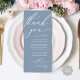 i kärlek och visa er uppskattning för gästerna när de sätter sig ned på sitt säte och läser den här personligen charmerande tack för att ni placerar kortet (tack) Middag Lunch Brunch firande i dammblått tema. Det är ett underbart sätt att sparka av er speciella dag firande! Det här kortet anger tonen för en händelse som inte kan glömmas bort. Tack-kortet har ett modernt designskripttema som ger dig en aning elegans utan tidpunkter i firande. Designad av TeeshaDerrick