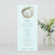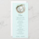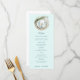 Visa din strandmottagningsmeny med den här vackra surfboard-middagsmenyn. Den här designen har en vattenfärgsbild av en tropisk strand i ställe med Juldekorationer. Färg används bland annat, skifferblått, grönt av skog, elfenben och tan.