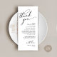 Vi presenterar perfekten som avslutar beröring till din bröllopsmottagning - vår elegant romantisk svart och vit Bröllop Tack Stationskort, med korttiteln "Tack!"! Designat för att uttrycka er uppriktiga uppskattning för varje gästs närvaro på din speciella dag, är dessa kort det perfekta sättet att göra din middag i bord en personlig beröring. Dessa kort för att ställa in ställe är lätta för användan - bara ett ställe på varje middagskort för att skapa en vacker och tankfull presentation. De kommer inte bara att få gästerna att känna sig uppskattade, utan de kommer också att tillföra ert mottagande en något sofistikerad form. Oavsett om du planerar ett intimt möte eller ett stort firande, är det perfekt sättet att uttrycka din tacksamhet och få dina gäster att känna sig omhuldade att ange kort för det moderna manustemat i Bröllop Tack. Beställ din i dag och lägg till en speciell beröring till din lyckliga dag efter middagen! Designad av TeeshaDerrick.