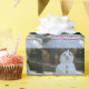 Vintern var temat med Cheery Snögubbe som hängde ut i skogen med sten för ögon, näsa och knappar, grenar för leende och arm, och en säsongsbunt och grönt buh-hatt. Text som säger: Öppna INTE förrän jul i ett rött teckensnitt färg. Behålla talesättet eller ANPASSA textrutan och infoga ditt eget meddelande. Originalfotografi © TamiraZDesigns.
