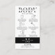 Affärskort med minimalistisk kroppsskulptering av eftervårdsinstruktioner, perfekt till ge innan och efter kroppsformande behandling. Detta moderna svarta och vita vårdkort omfattar förbehandling och efterbehandlingsanvisningar för behandling av kroppsbesvär. Med trendig typsnitt och utrymme för logotypen är den här helt redigerbara handboken för matematikvård perfekt till använda för ditt skönhetsarbete.