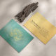 Elegant Glowing Guld Lotus and Teal Grunge Background Yoga Instructor Business Card Template.