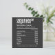 Insurance Adjuster Nutrition Facts Funny Inbjudningar