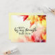 Det kristna platta hälsningskortet skildrar en enkel, minimal vattenfärg med rött och gult höst löv. Det är ett uppmuntrande inspirationcitat från Bible Verse Philippians 2:13, "Inte av min styrka utan av hans." Hälsning, bön kan vara personlig eller raderas för ett handskrivet meddelande.